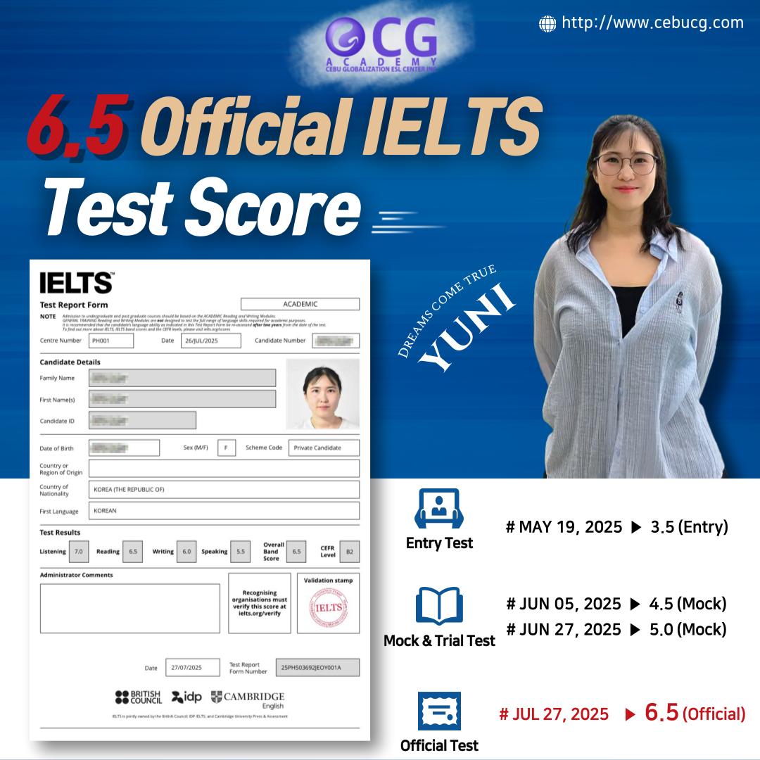 Yuni – học viên tại CG – đã chính thức chinh phục IELTS 6.5 sau thời gian dài học tập nỗ lực và sự nghiêm túc, bắt đầu từ số điểm đầu vào chỉ 3.5!