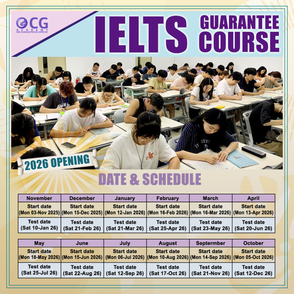 2026 IELTS Guarantee course schedule 10/10/2025 / By CG Academy / Leave a comment Share this Post! About the Author : CG Academy Học viện Anh ngữ CG (Cebu Globalization) Send a Comment Cancel reply Your email address will not be published. Save my name, e-mail, and website in this browser for the next time I comment.