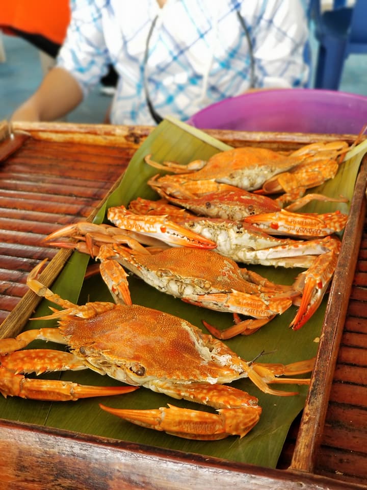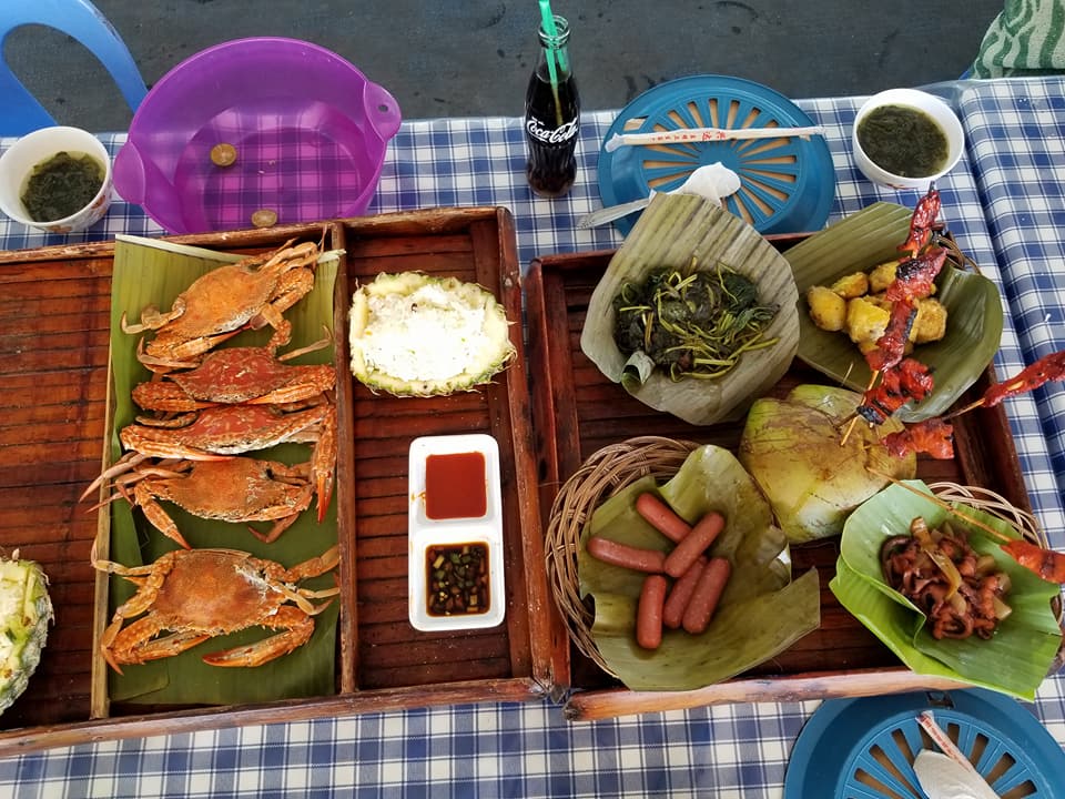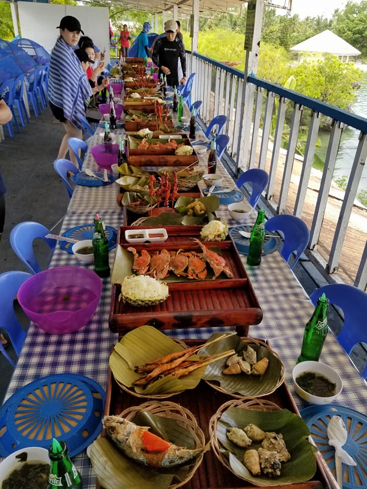 Tấp vào một hòn đảo nhỏ để thưởng thức bữa ăn trưa với cơm trong trái thơm, hải sản tôm cá đủ cả một bàn.